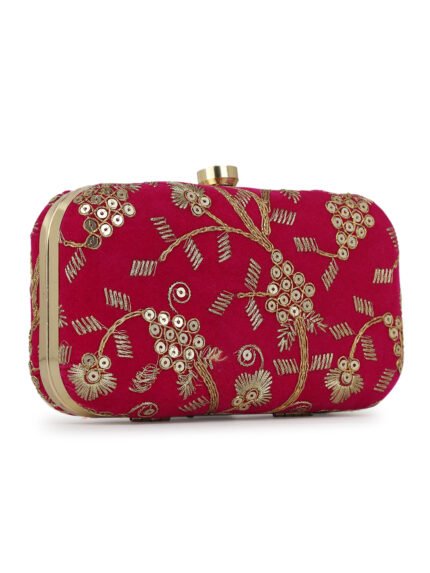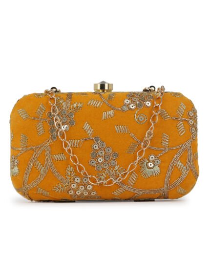 White & Gold-Toned Embroidered Party Box Clutch For Girls and Womens For Girls and womens