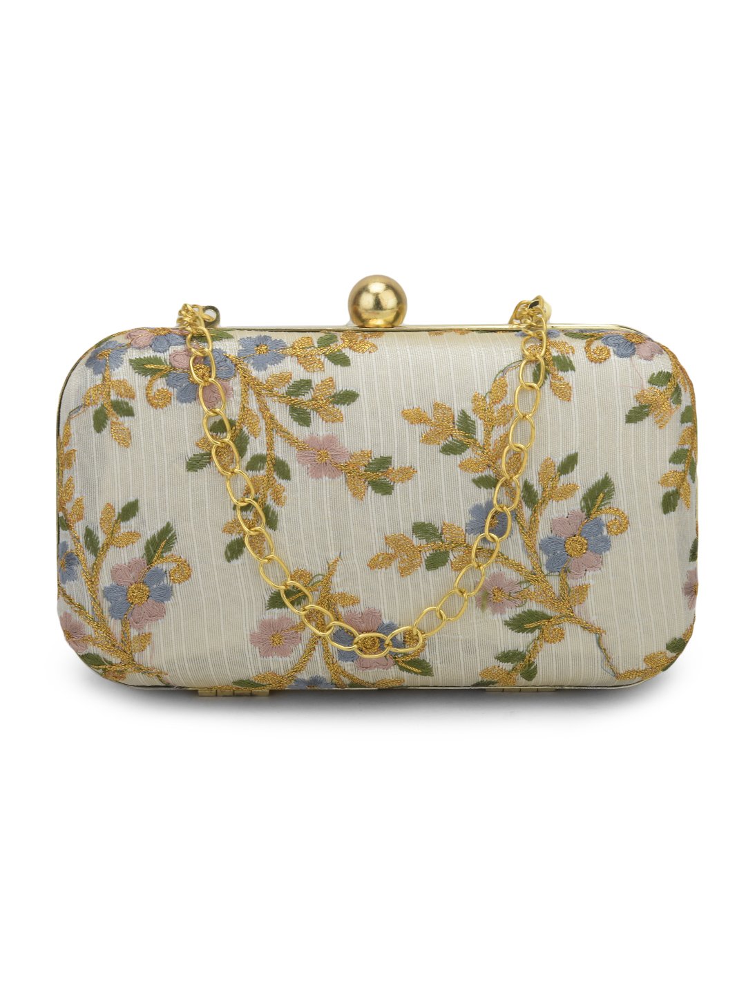 White & Gold-Toned Embroidered Party Box Clutch For Girls and Womens For Girls and womens
